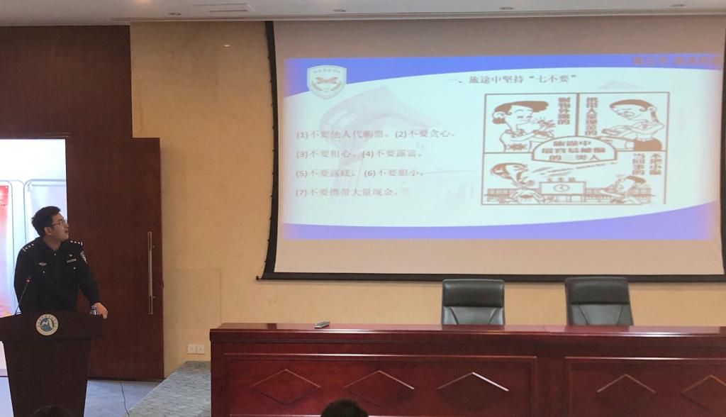 王教导员以我们身边的案例为切入点,分别对“防诈骗、防抢劫、防盗、防欺凌、禁毒”等五方面内容进行生动的阐述,同时还重点和同学们传授如何预防和处理防盗抢伤害、网络欺诈、校园暴力的方法与技巧,提醒同学们如若遇到危险时要以自身安全为前提,避免与罪犯直接发生冲突。王教导员给同学们带来了通俗易懂、简单实用的法律知识,他联系实际,以案释法、以法论事博得同学们的阵阵掌声。
