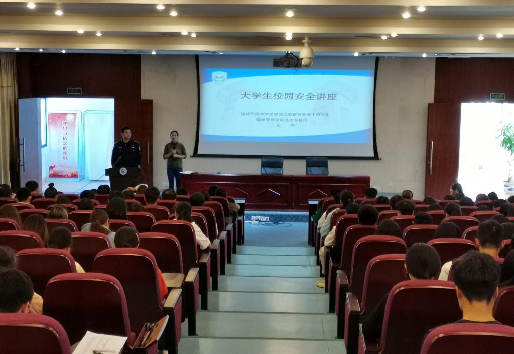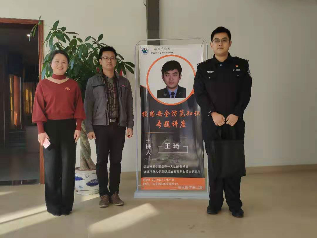 为进一步增强学生的法制观念、安全意识,提高自我防范能力,由学工处主办,临床医学系承办的法律知识讲座于11月21号下午在实训楼四楼报告厅举行,此次讲座邀请了临床医学系的共建单位——福建警察学院法律系一大队副教导员王琦为我校学子讲授“校园安全防范知识”。
