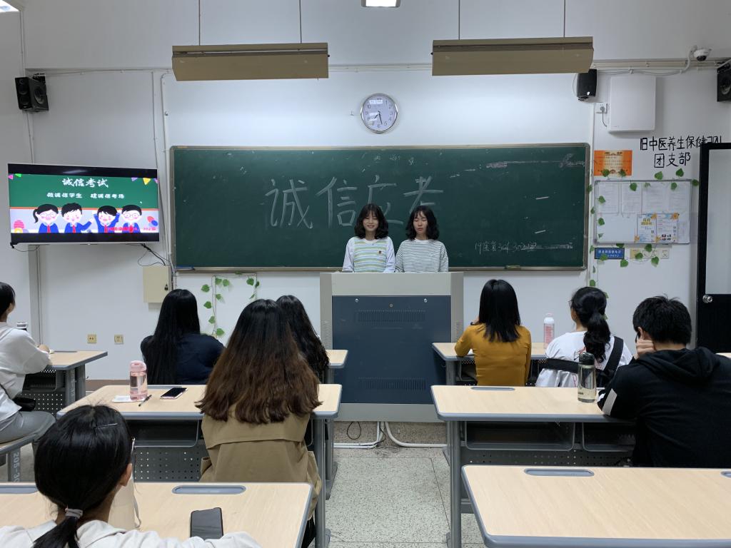 为培养同学们树立诚信考试,文明做人的理念,以积极向上的状态迎接即将到来的期中考试,临床医学系学习部于十一月初组织18、19级各班召开“诚信考试”主题班会。