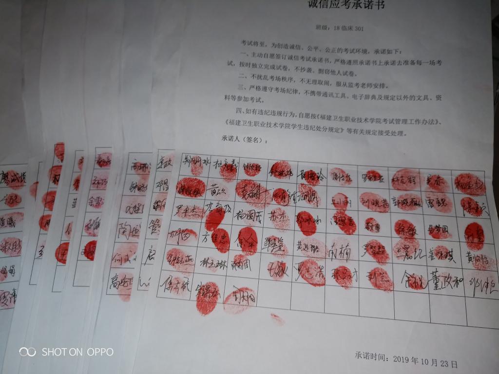 本次班会由各班学委通过PPT形式为同学讲解诚信应考包括诚信应考的利弊及重要性。随后,同学们签订《诚信考试承诺书》希望每位同学凭自己辛勤的汗水和真才实学,在考场上发挥出色水平,以诚信考试为荣,以违纪作弊为耻,弘扬求实学风,维护知识的尊严!以诚实守信的态度、用扎实的知识、坚强的意志、求真的态度向自己、向家人、向老师递交一份知识和人格都合格的答卷!