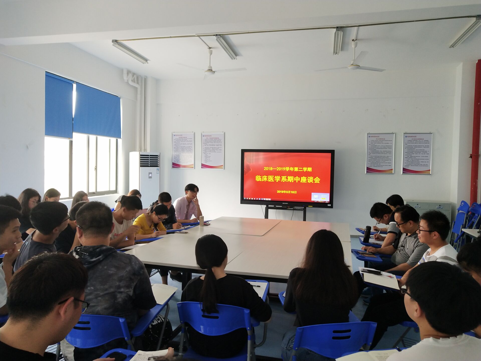 2019年5月16日,临床医学系在实训楼401召开2018-2019学年第二学期期中座谈会。督导室叶榕、陈顺萍老师,临床医学系林国威副主任、林浩副主任、童辉燕老师,学习部长以及临床、中医、口腔、康复治疗技术、针灸推拿专业学习委员作为学生代表参加了本次会议。