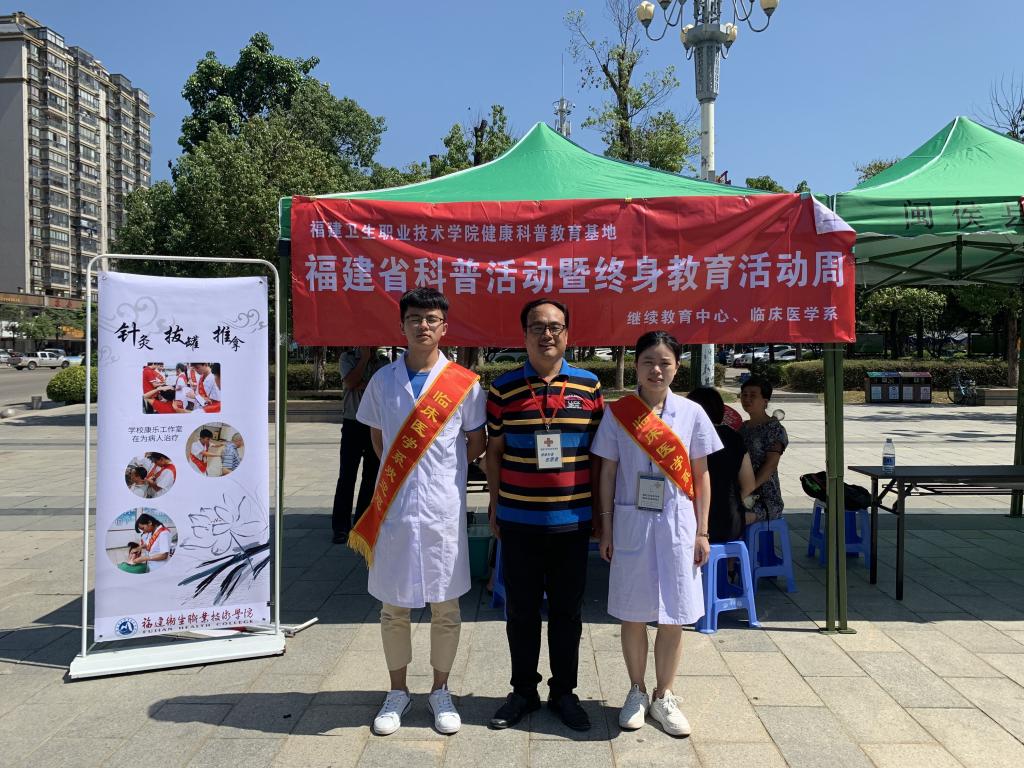 2019年9月17日,临床医学系携手闽侯县科协在闽侯县民俗园开展“2019全国科普日”闽侯县主场活动。今年的科普日主题是“礼赞新时代,智慧新生活”。临床医学系林国威副主任和中医教研室王雯婷老师带领学生参加本次活动。