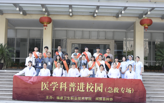 为普及医学急救常识,提高在校学生的健康自救意识,在闽侯县科协的大力配合下,10月24日下午,临床医学系林国威副主任带领系部教师和医博社团同学来到福建艺术职业技术学院举办“心肺复苏、海姆立克急救法”科普讲座,由临床医学专业的刘智强、朱晓蕙两位老师为2019级200余名在校生献上一场精彩的急救知识讲座。