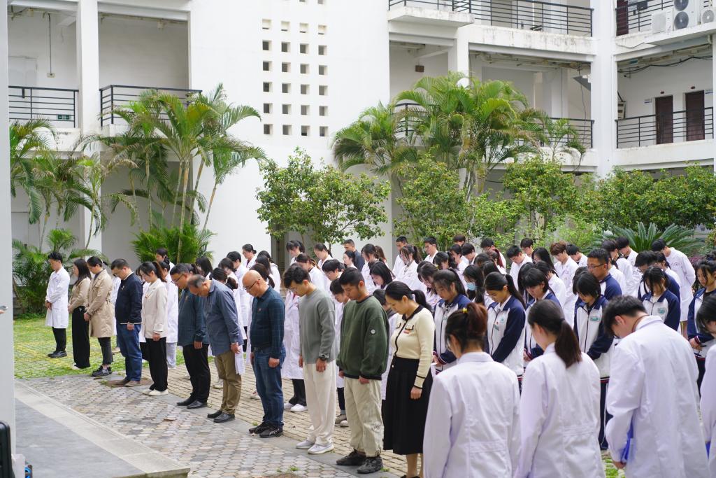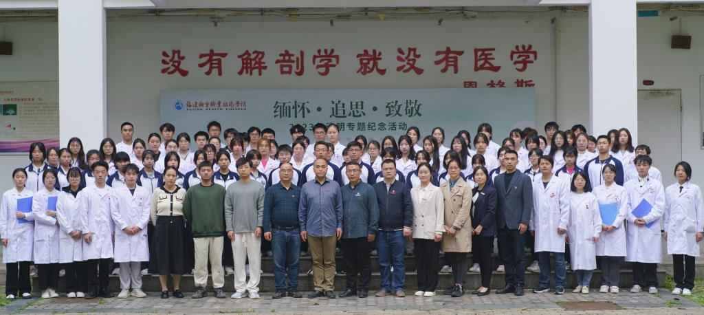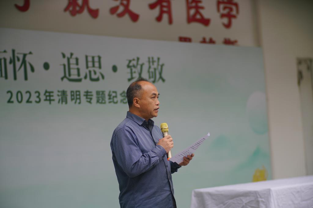 4月4日,我校举办以“缅怀•追思•致敬”为主题的2023年师生清明追思专题纪念活动。活动由校团委、医学院主办,医学院教师第二党支部、医学院团总支、解剖教研室、校健康科普青年讲团承办。校长许能锋、校团委书记林桂松、医学院党政领导班子及师生代表参加此次活动,闽侯县青少年宫、闽侯县职业中专学校师生代表受邀出席活动,活动由医学院教师第二党支部入党积极分子林玉琼老师主持。