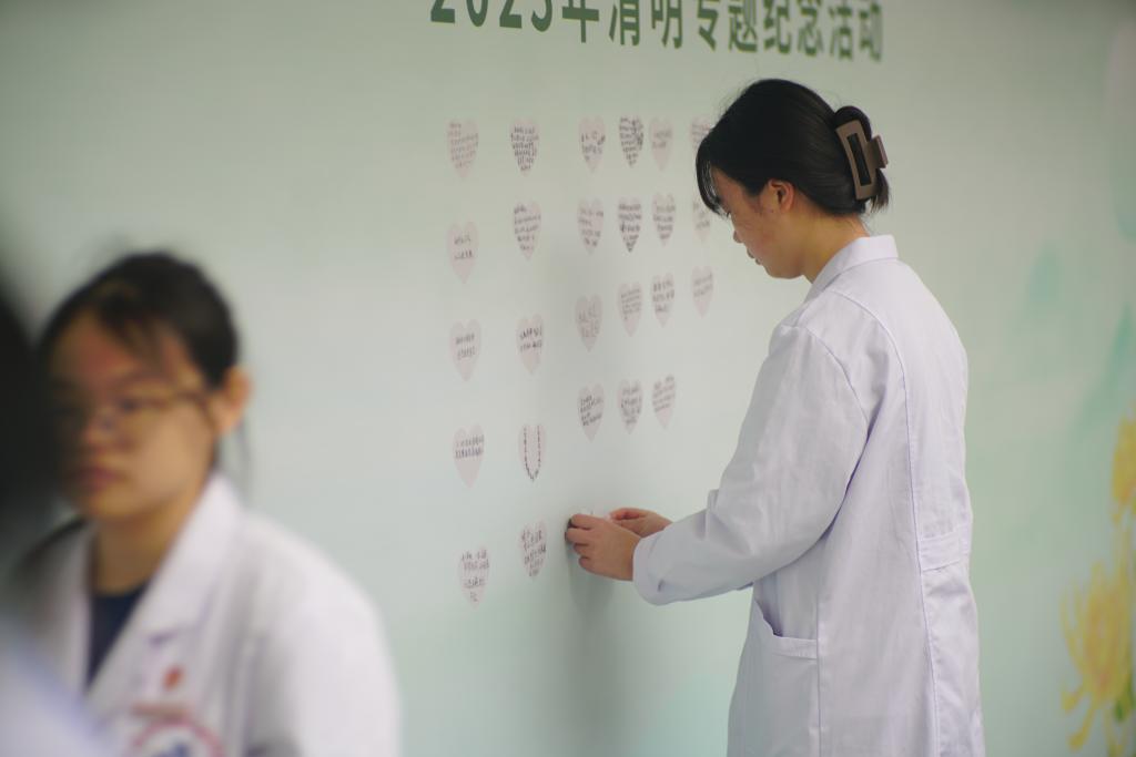 随后,师生们向大体老师鞠躬、敬献鲜花,并在追思墙上寄语留言。“大爱无言、感念在心!”“谢谢无言良师照亮医学生前进的道路!”有力的笔迹,是每位同学心中的一份坚定,是获得的一份力量!