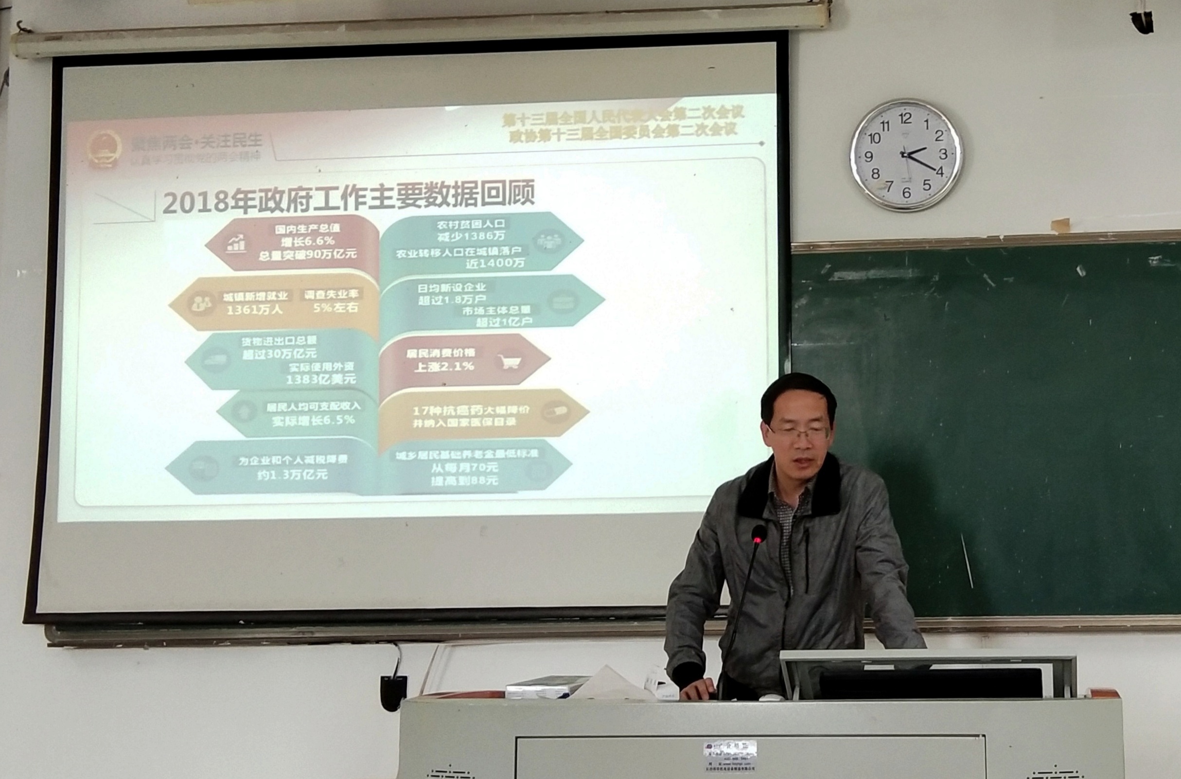 为深入学习贯彻两会精神,临床医学系党政领导郭礼坚主任、陈俊颖副书记分别于5月8日下午在教学楼109教室,5月9日下午在教学楼210教室开展以“聚焦两会”为主题的形势与政策课。