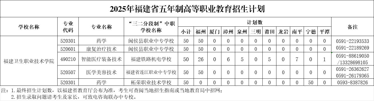 2025年度,我校五年专将分别与福建铁路机电学校、闽侯职业中专学校、连江职业中专学校及柘荣职业技术学校实施联合办学。学生需在前三年于联办中专学校完成规定学业,经考核合格后升入我校继续深造。